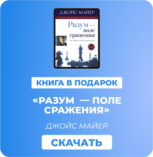 В завершение хочу предложить Вам книгу Джойс Майер «Разум – поле сражения». Она поможет узнать, как с помощью Слова Божьего изменить своё мышление и в результате изменить свою жизнь. В этой книге Джойс рассказывает о том, как одержать победу в сражении, которое развернулось в Вашем разуме, и обрести свободу. Скачайте книгу бесплатно на сайте перейдя по ссылке: gnctv.org/books/tmiab