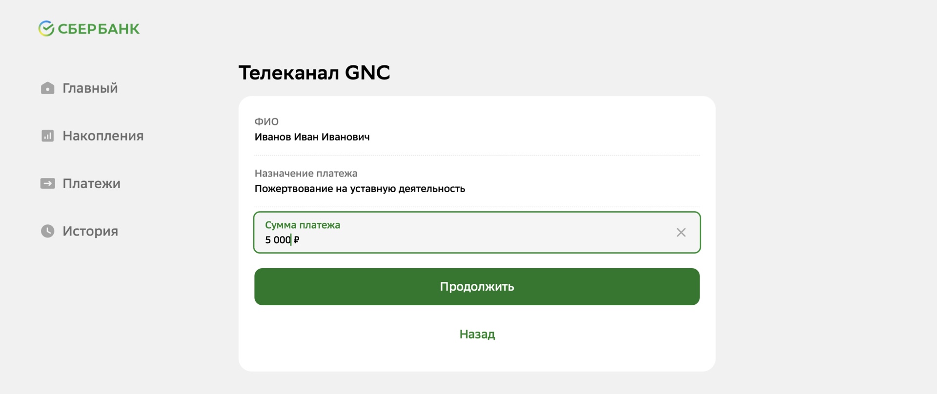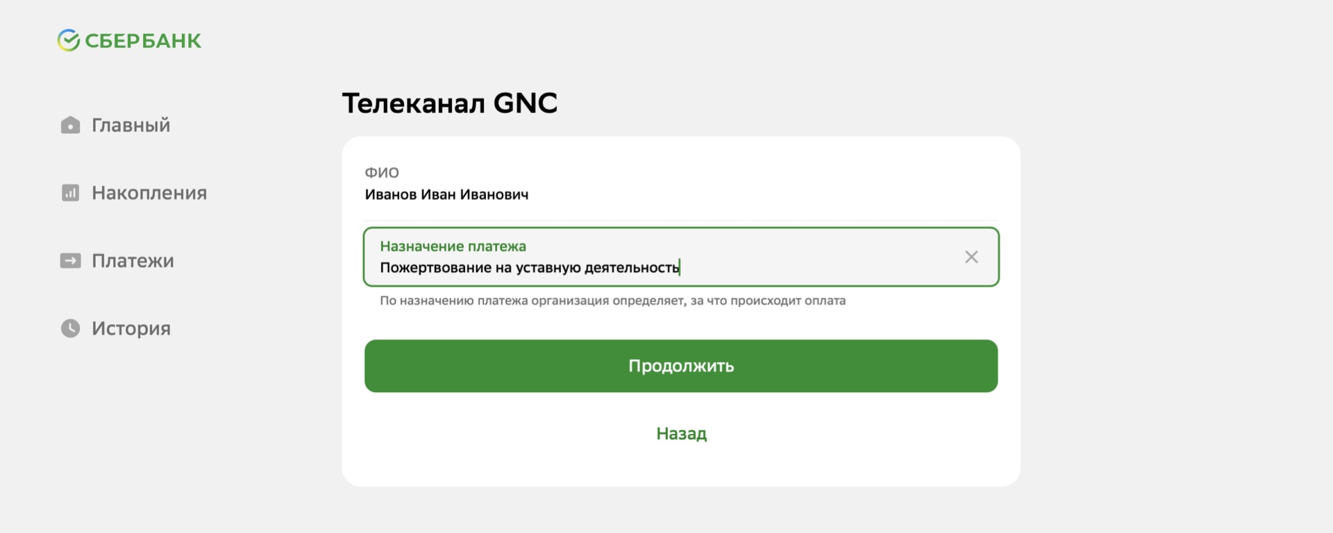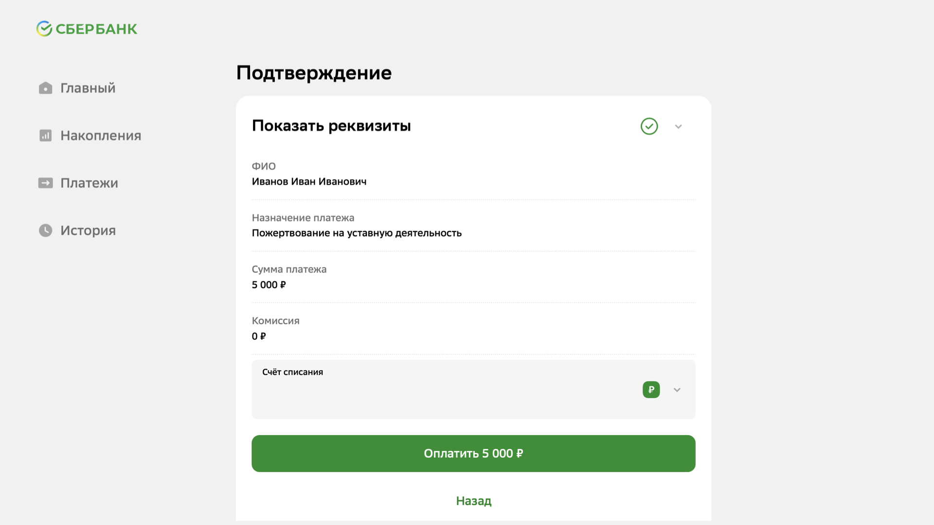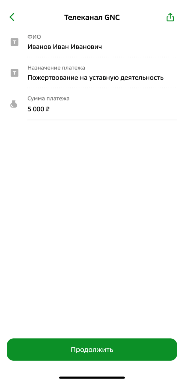 Пожертвовать через Сбер Банк